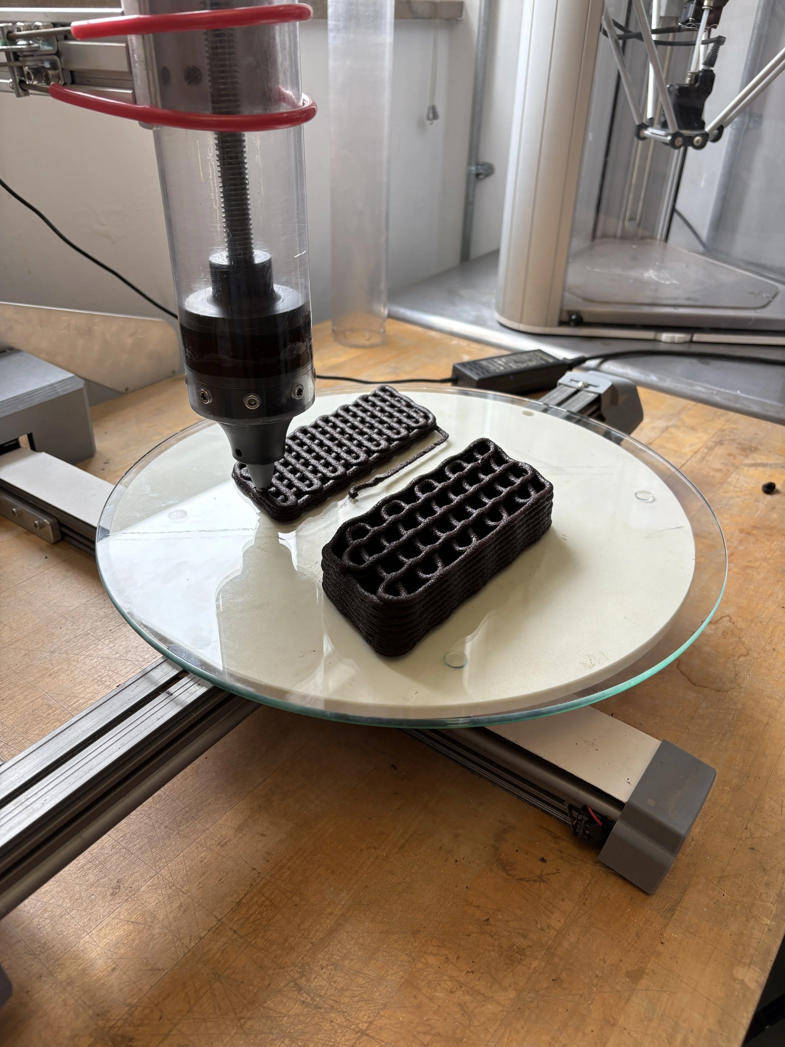 Synopsis: I've been exploring various biomaterial recipes for 3D printing since January 2025. I've primarily worked with variations of coffee-based bioplastic recipes, but I've also experimented with Japanese knotweed, mycelium, and construction and demolition fines. I've developed a reliable coffee-based bioplastic recipe and a 3D printing methodology that can produce durable extruded outputs.