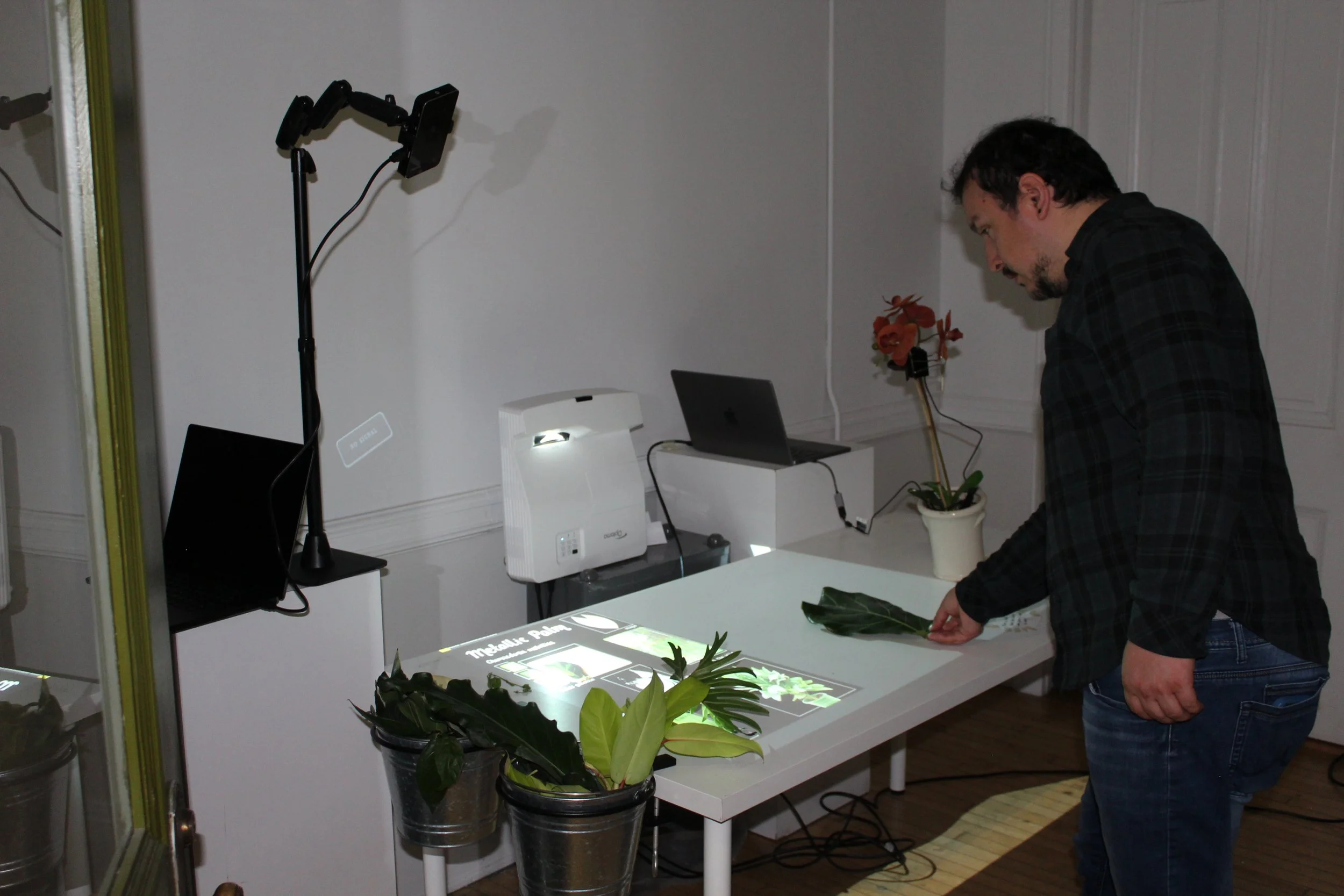 The interactive table not only recognizes real plants placed on top of it, but seeks to get people to do so by offering them new plant vocabularies that get them to pay attention to them in ways they haven’t done before. For example, it asks them to describe venation patterns and edge shapes with precise, descriptive language. Finally, this interactive experience seeks to establish meaningful connections between plants and people by explaining the plant’s cultural significance. For example, their presence in common foods, traditions, and rituals, or the history behind their names.