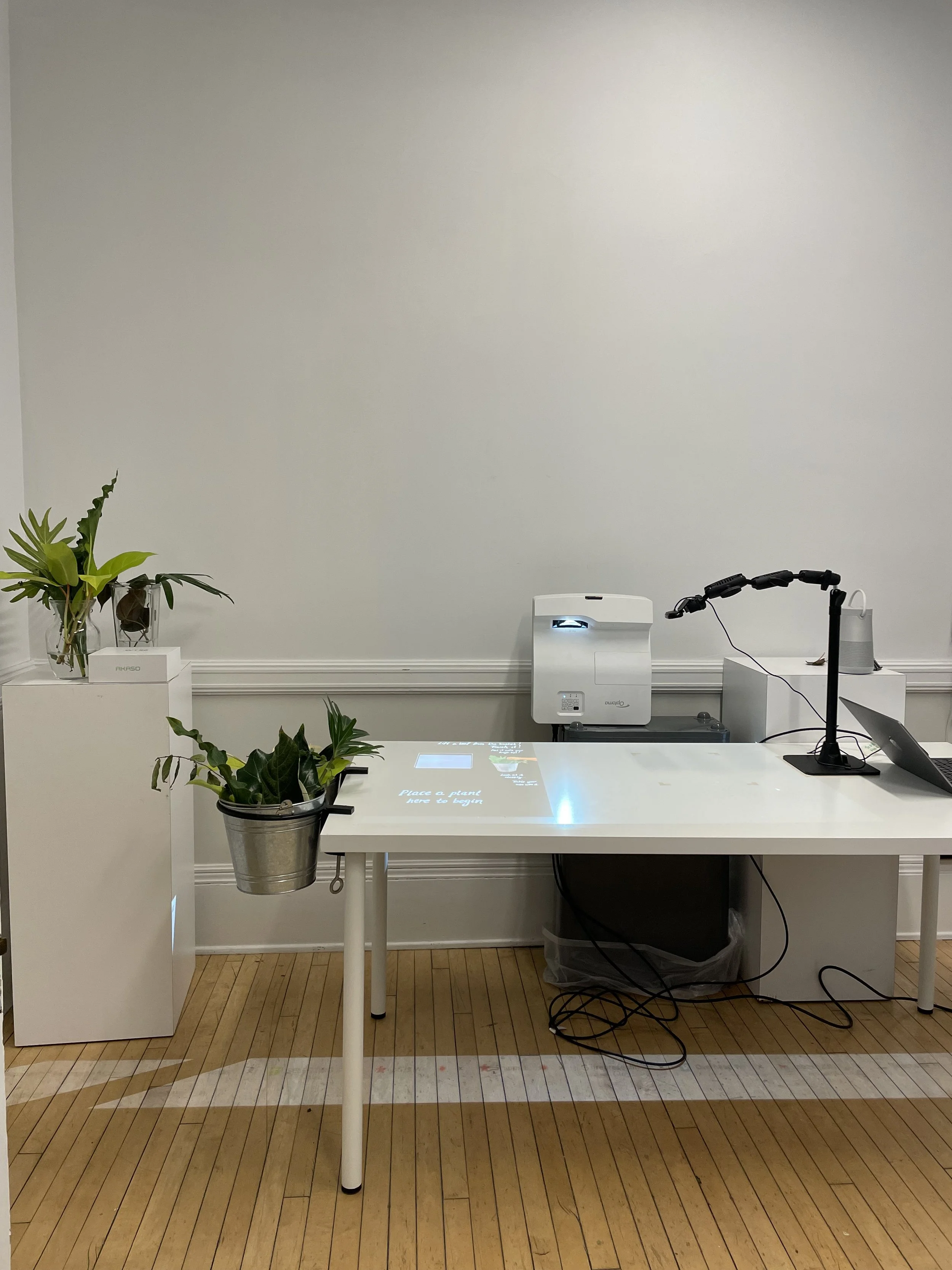 We realized our interaction would feel more magical and be more of an immersive experience if it could be projected onto the table the participants were at instead of the small iPad screen, and if the display could be more informative - so we made updates the visual display that would be projected upon the leaf recognition for our demonstration prototype. We also used a potted orchid as a stand for our webcam to have it hidden. If we had more time, we could have created stronger wow-factor interactions. Like what if the leaf recognition triggered an animation or an activated a holographic 3D display?